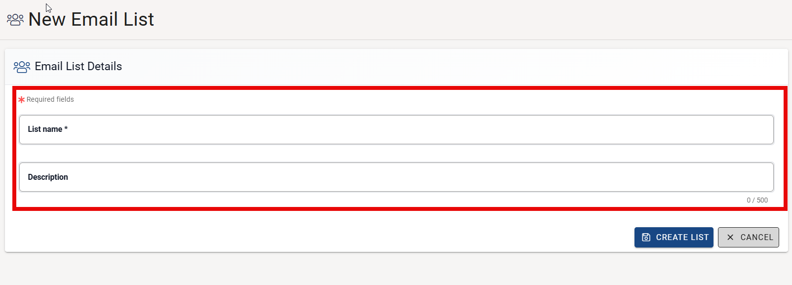 - List Name (Required): Enter a descriptive name for your email list
