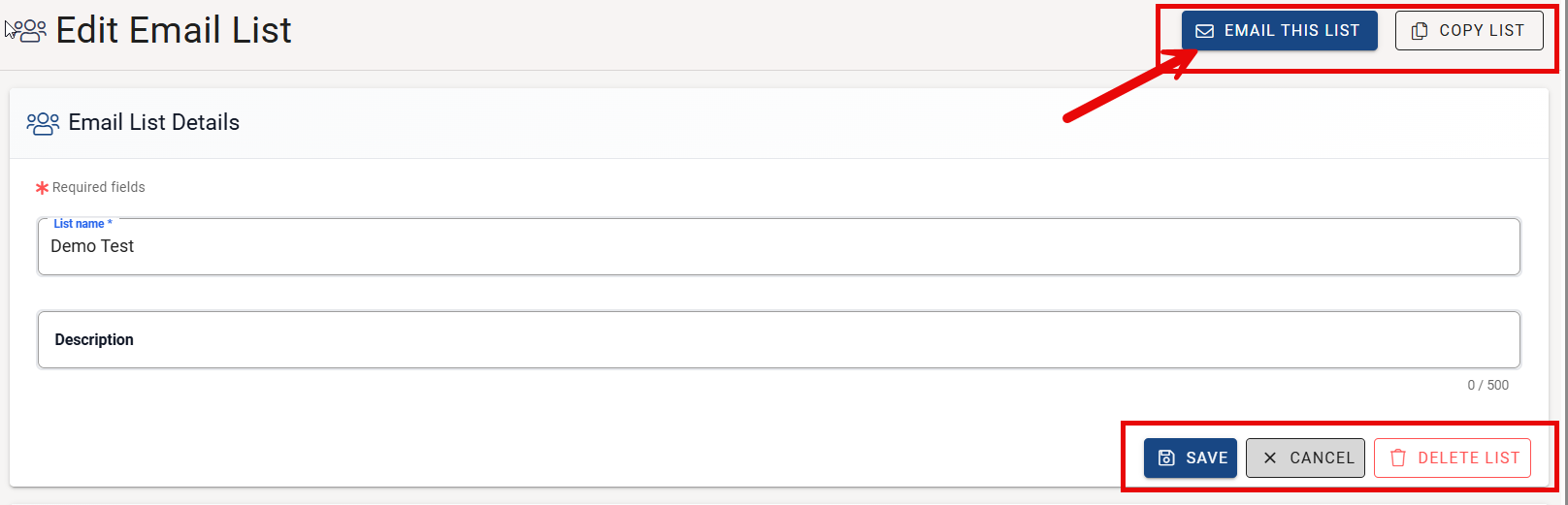 - Click the EMAIL THIS LIST button (located at the top right of the Edit Email List page)