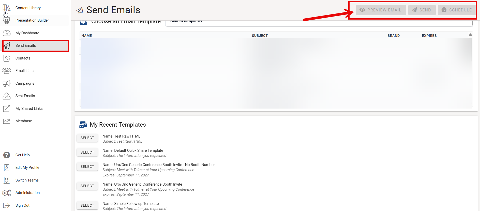 - SEND - Send the email immediately to all contacts on the list
