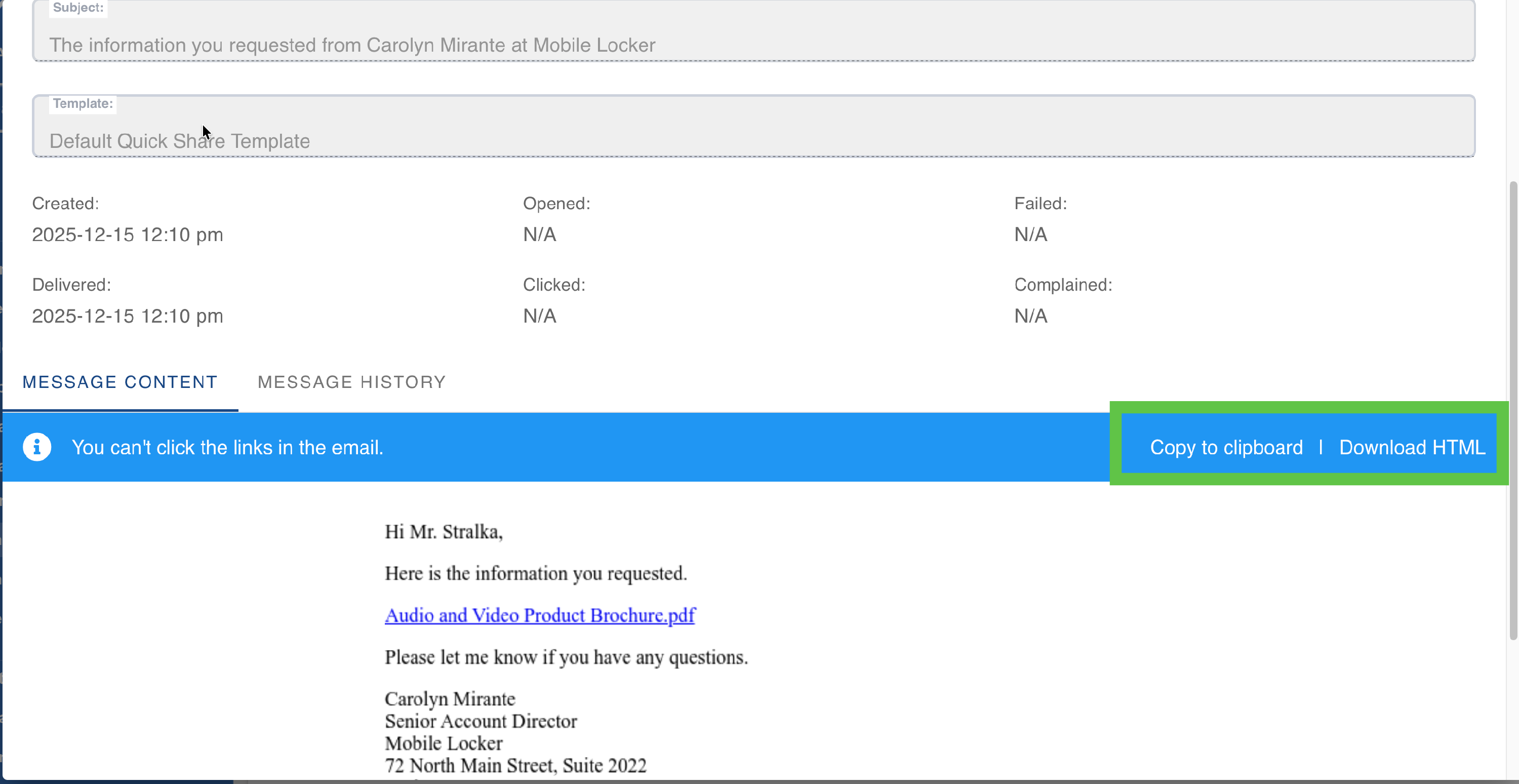 Download or copy the rendered HTML code of any email directly to your computer or clipboard. Navigate to Emails > Open an email > Copy or Download. Think of it as your debugging stocking stuffer!