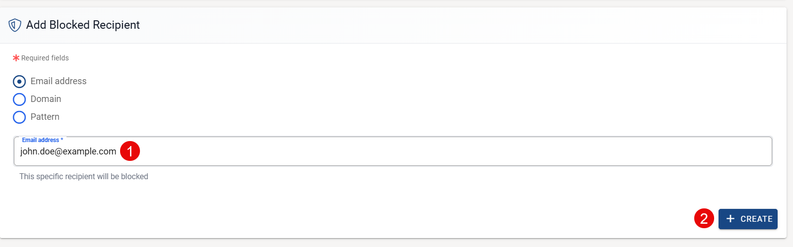 In the Add Blocked Recipient section, you can block recipients in three ways: