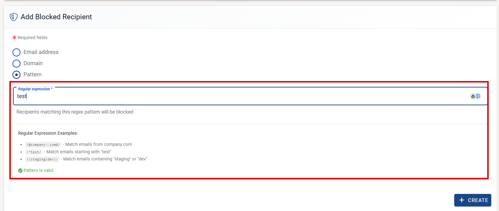 - Verify - Check that "Pattern is valid" shows in green